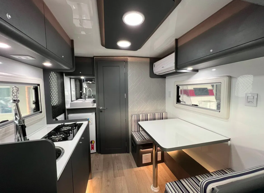 Super novo e completo com muitos opcionais exceto cozinha externa.Ideal para 3 pessoas confortavelmente, com tudo que é preciso para as viagens. Pequeno por fora, mas com um aproveitamento de espaço excelente no projeto.